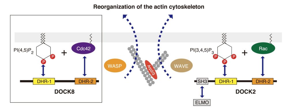 A conserved PI(4,5)P2–binding domain is critical for immune regulatory function of DOCK8.