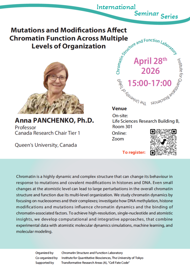 Format Hybrid Venue: Room B301, Integrated Bioscience Building, Institute of Quantitative Biosciences, The University of Tokyo Online: Zoom