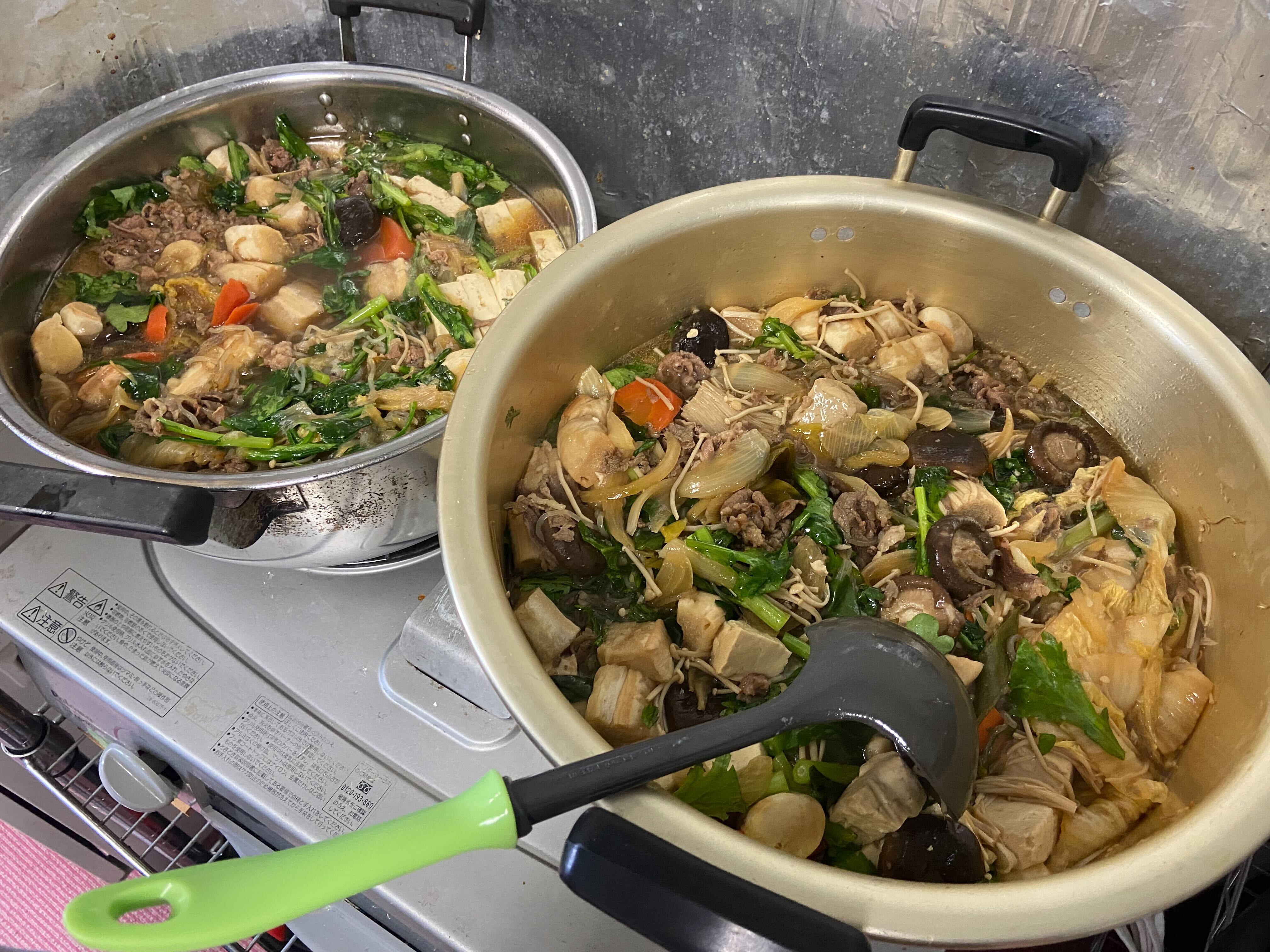 | 今回はすき焼きと中華火鍋をました。皆さん、今年もお疲れ様でした。 |