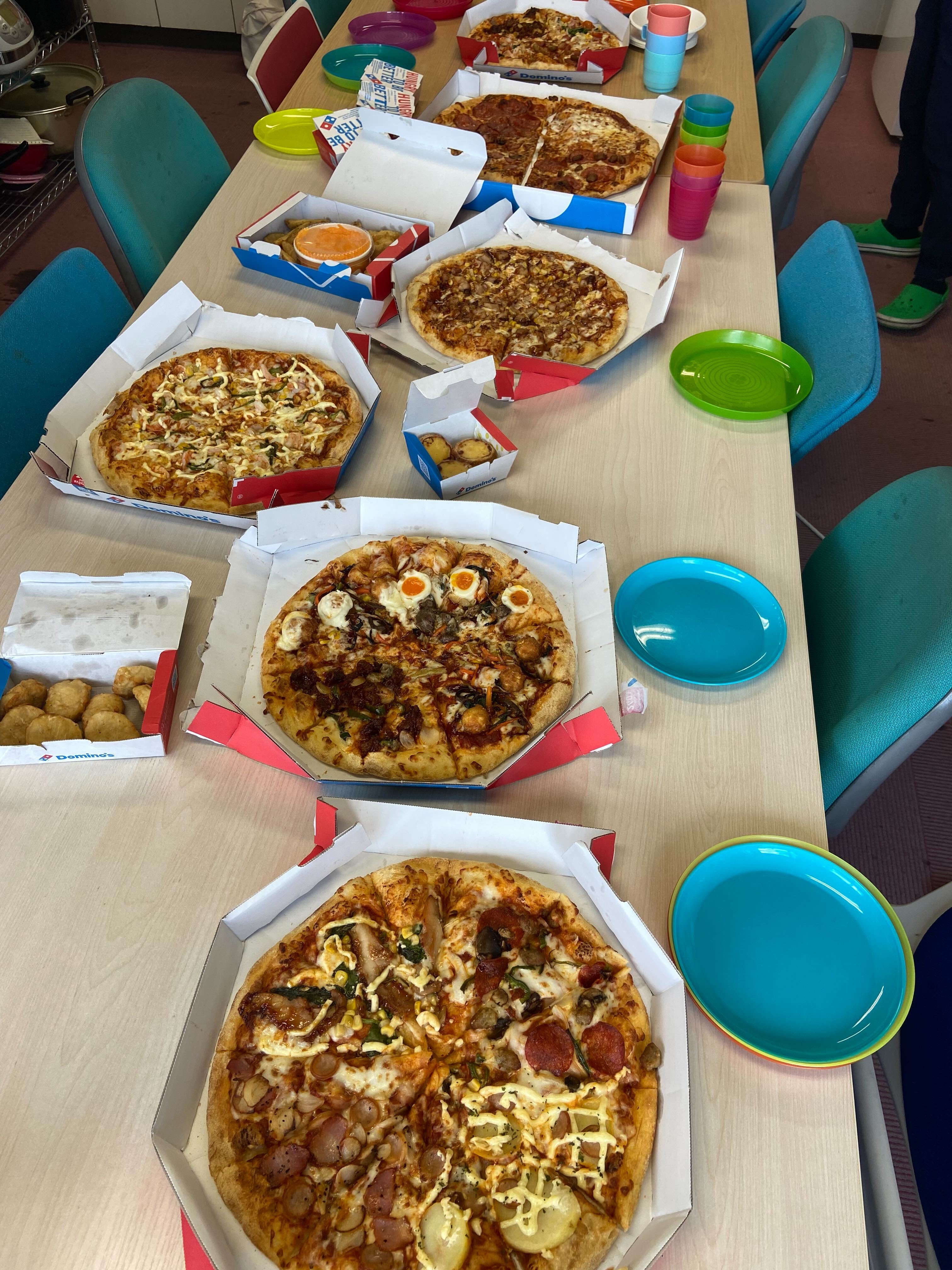| 医学科3年次の配属が終了しました。 今年はお疲れ様のピサを食べました。! |