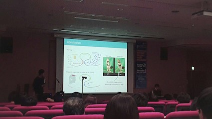 | 国立遺伝学研究所で開かれた2017年度遺伝研研究会「マウスとラットで拓く新しい比較実験動物学」に参加しました。大学院生のKimさんが「25種近交系ラットの系統関係の解析」という演題でポスター発表を行いました。 |