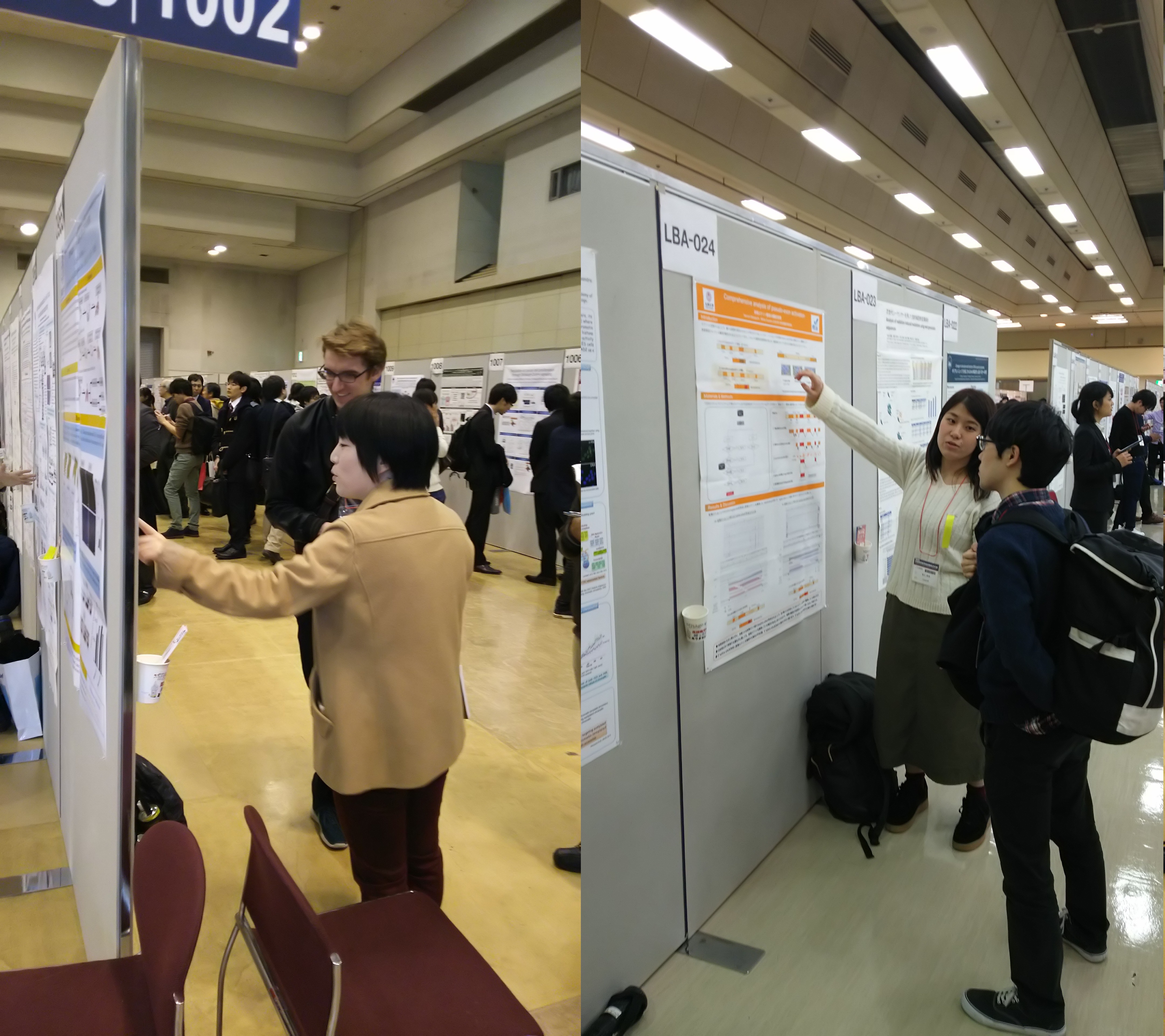 | 神戸で開かれた「2017年度生命科学系学会合同年次大会」に参加しました。大学院生の菊竹さんが「乳がんにおけるHMCN1変異における腫瘍内不均一性の解析」、久保田さんが「痙直型脳性麻痺発症に関与するDMRT3遺伝子エンハンサーの同定」、坂口さんが「新規エクソン獲得の網羅的探索」という演題でポスター発表を行いました。 |