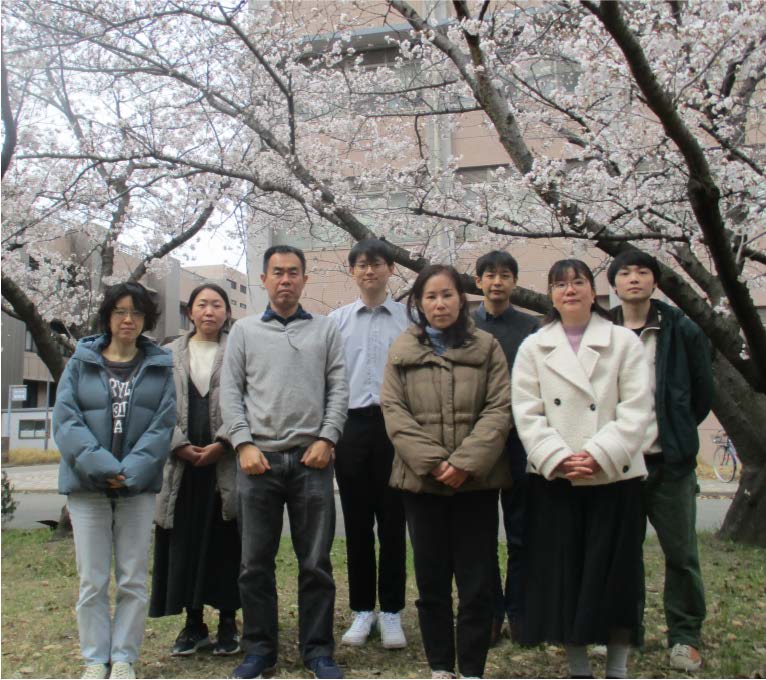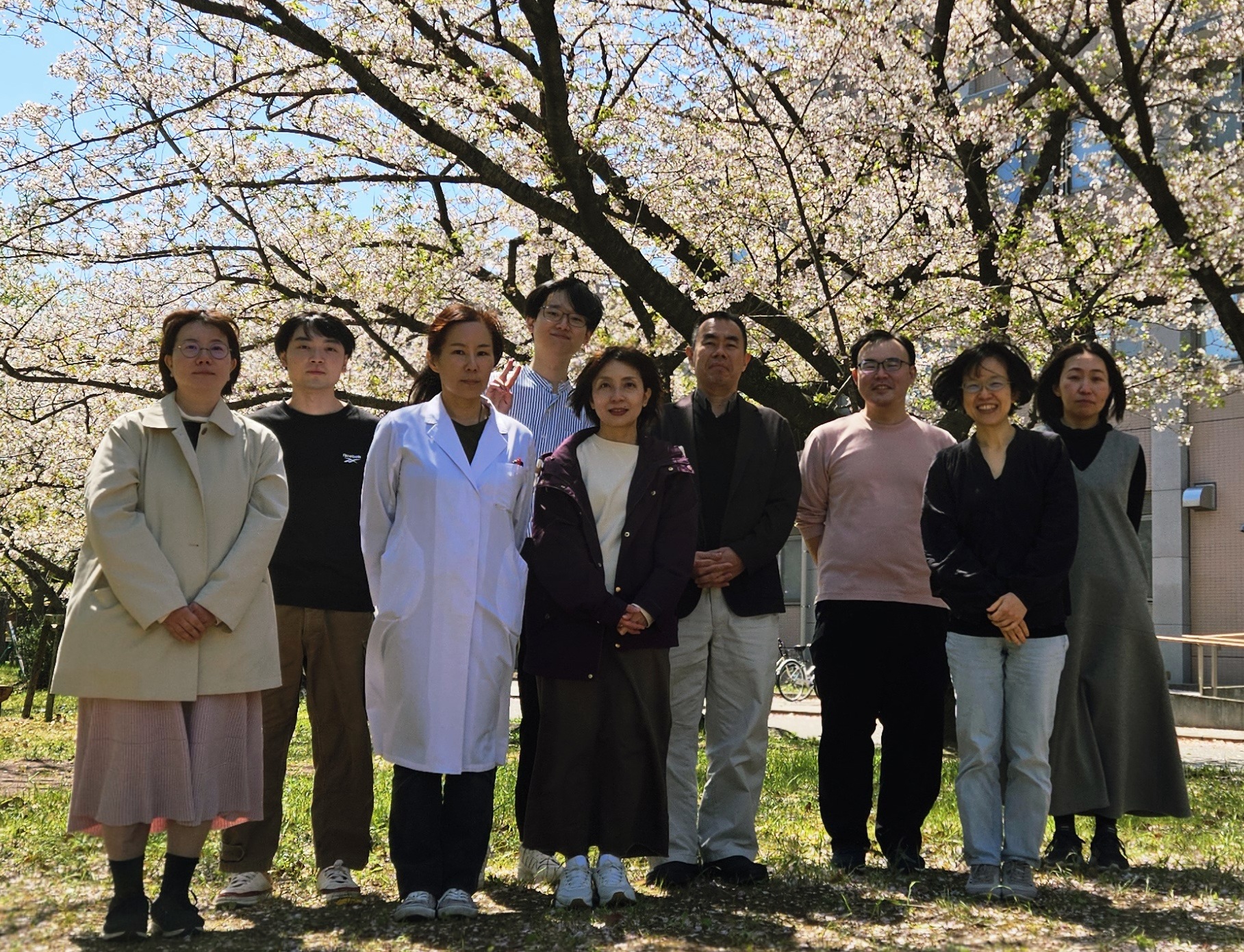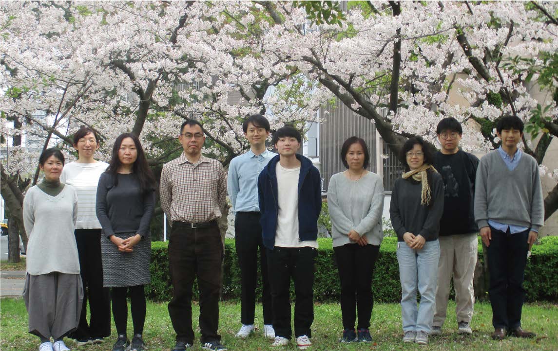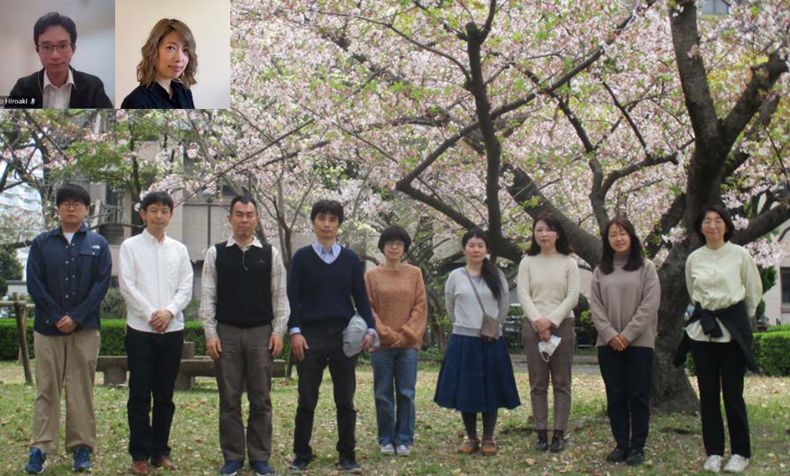 - 今年の集合写真はようやく桜の木の下で撮れました!事務補佐員の久保田佐知子さんが加わりました!よろしく!!